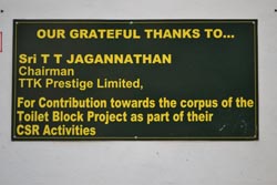With the financial support of 75 lakh from TTK Prestige, 70 toilets were built with a Dewatt plant - to convert sewage to regular water for irrigation.