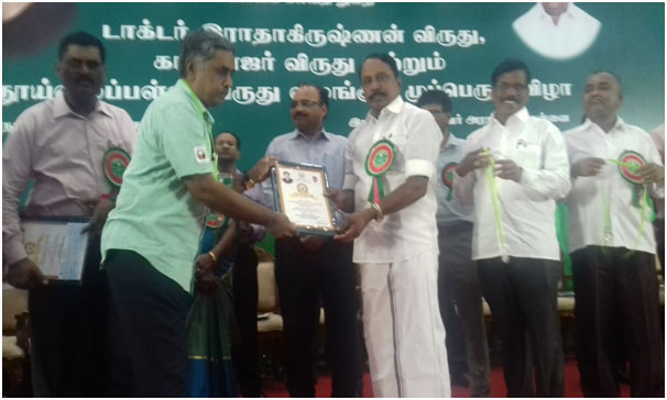 Mr.K.Bhaskar, the Retired Head master of T.T.Narasimhan Swami Dayananda Higher Secondary School has been honored with the BEST TEACHER AWARD(Dr.Radhakrishnan Award) by the govt of Tamilnadu on the 5 th of September 2018.